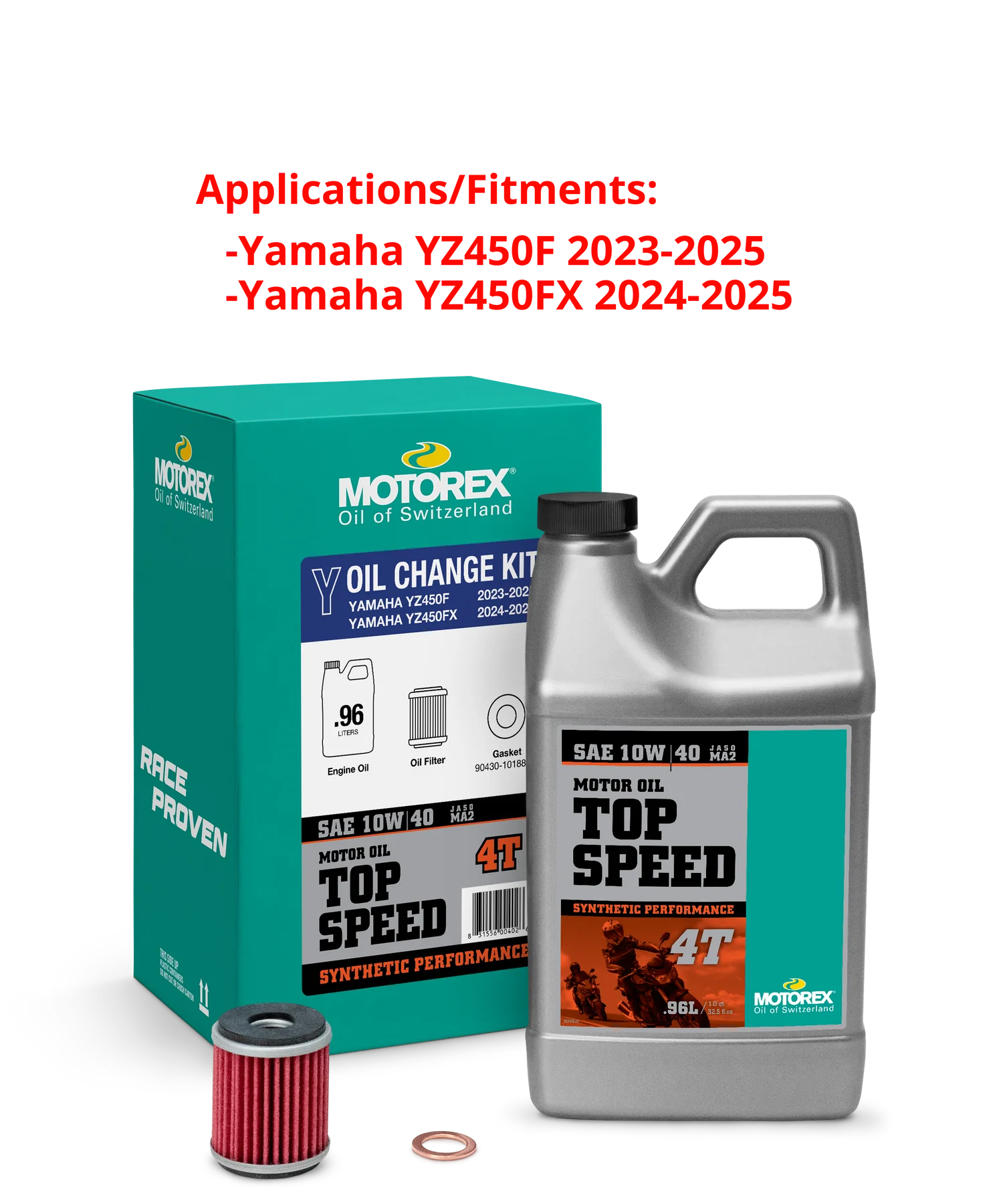 Oil changes made easy with exact fill kits for Yamaha YZ450F/FX motorcycles (newer models).