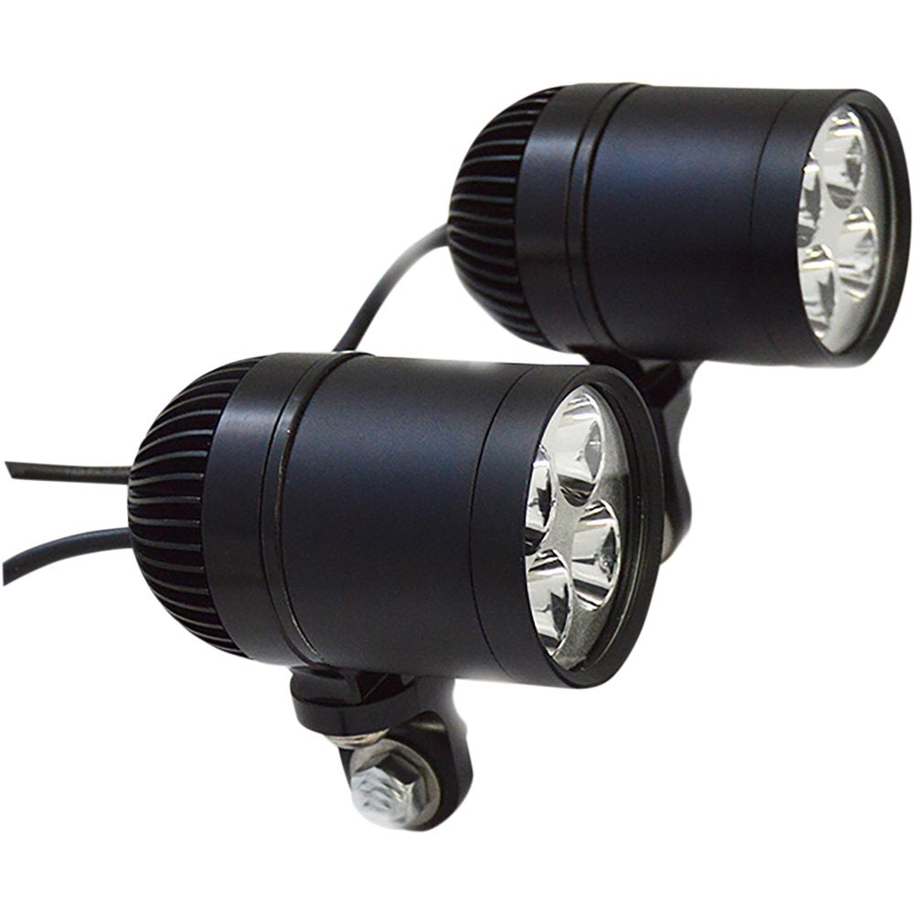 LED lights that put out a super-bright 3000 Lumens of daylight white light each rated at 6000 Kelvin, Each one of these lights has twice the output of the headlight, The LED lights use much less power than comparable Halogen bulbs, The aluminum housings are completely waterproof, The kit includes a set of LED lights, a lighted switch, adjustable mounting, and easy to follow instructions, Low power consumption