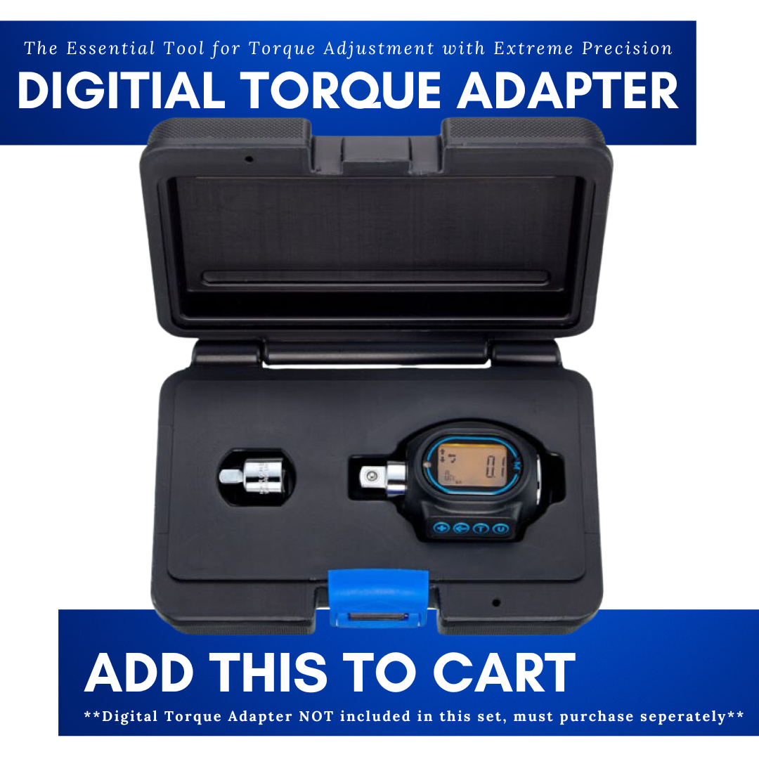*For safety purposes we strongly recommend using the SBVTools 3/8″ Digital Torque Adapter with this tool set. This "All-in-One" Torque Adapter with a range of 4Nm to 203Nm will cover all your motorcycle torque setting requirements. As part of routine maintenance it is a good idea to check the torque of important hardware such as front & rear axles (or rear wheel bolts), pinch bolts, brake calipers, handlebars, spark plugs, drain plugs, and various accessory items such as protection bars, skid plates, bag mounts and racks, shift levers, and any other component subject to stress and/or vibration.