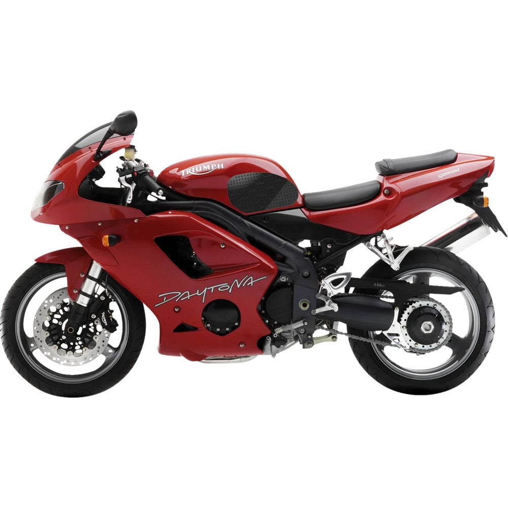 Make gripping your ride incredibly easy for increased bike control with more contact between bike and rider, Provides more lower body grip and less upper body stress, Ultra-clear proprietary elastomer material means paint and graphic remain visible through traction pads, Non-abrasive material; designed to wear down and be replaced like a tire, Will not wear down leathers as compared to grip tape, Pre-molded with rounded edges that resist peeling, Super-strong 3M* peel-and-stick adhesive, Made in the USA